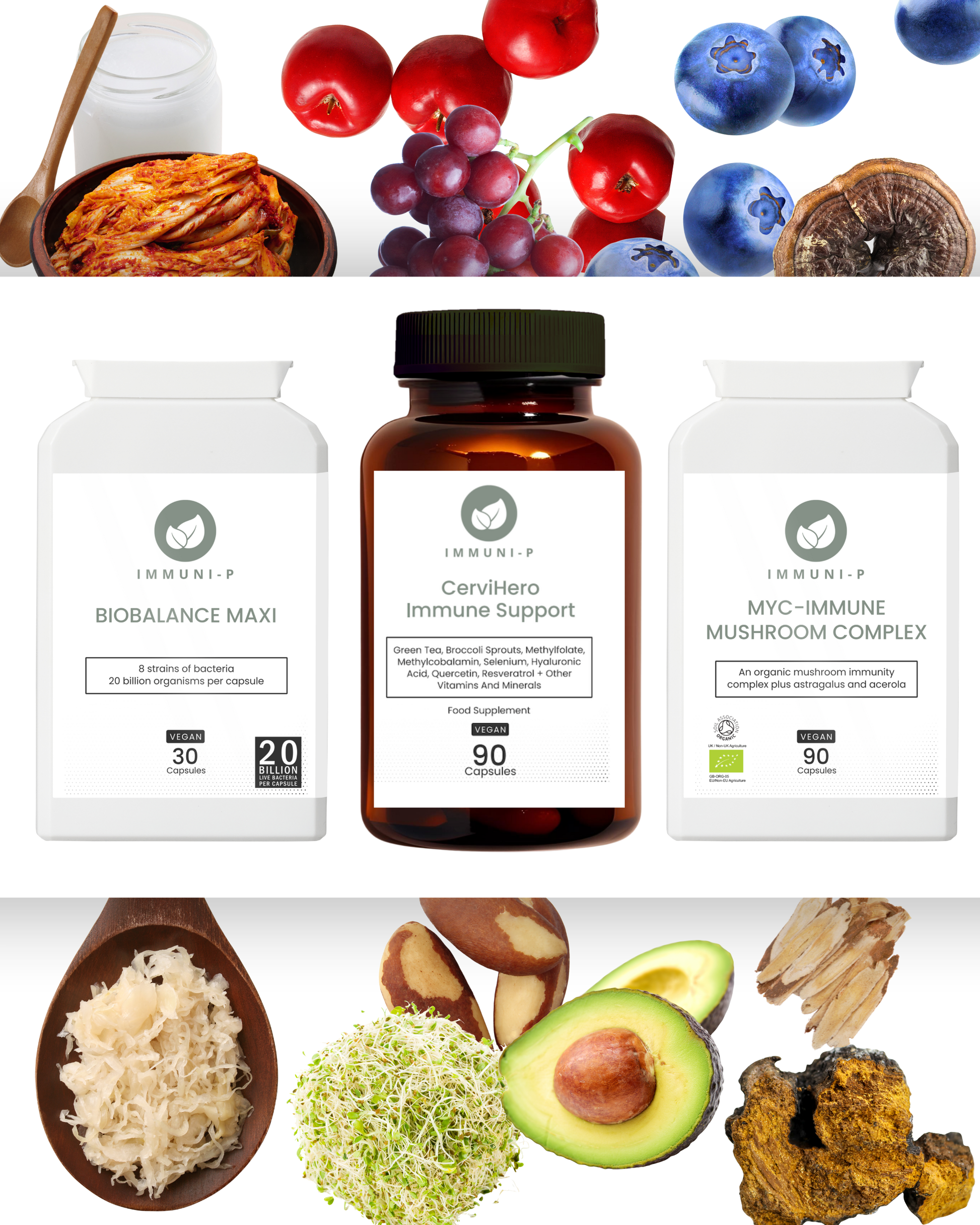 CerviHero Immune Support - containing 12 powerful ingredients specially chosen at effective doses to address hormone imbalance, inflammation, detoxification, tissue integrity and micronutrient deficiencies.